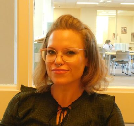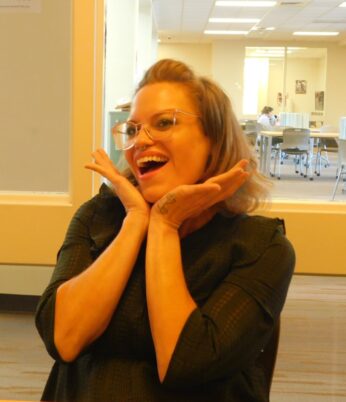 Answer: a little bit of a mishmash in Student Support Services and Instruction. I am the advisor and counselor – very similar to academic advisors – and mental health counselor. I teach classes with Gen Ed, and do classroom visits for professionalism and mental health. I have a broad umbrella. That’s one of the things I love the most. I get to change up my day. Because we have an employee out today, I’m helping find funding for this school. I’m very grateful that I can design my work for the day and have flexibility on my job. Note: Rachel was formerly the Director of Hayes Child Development Center on Lakewood Campus