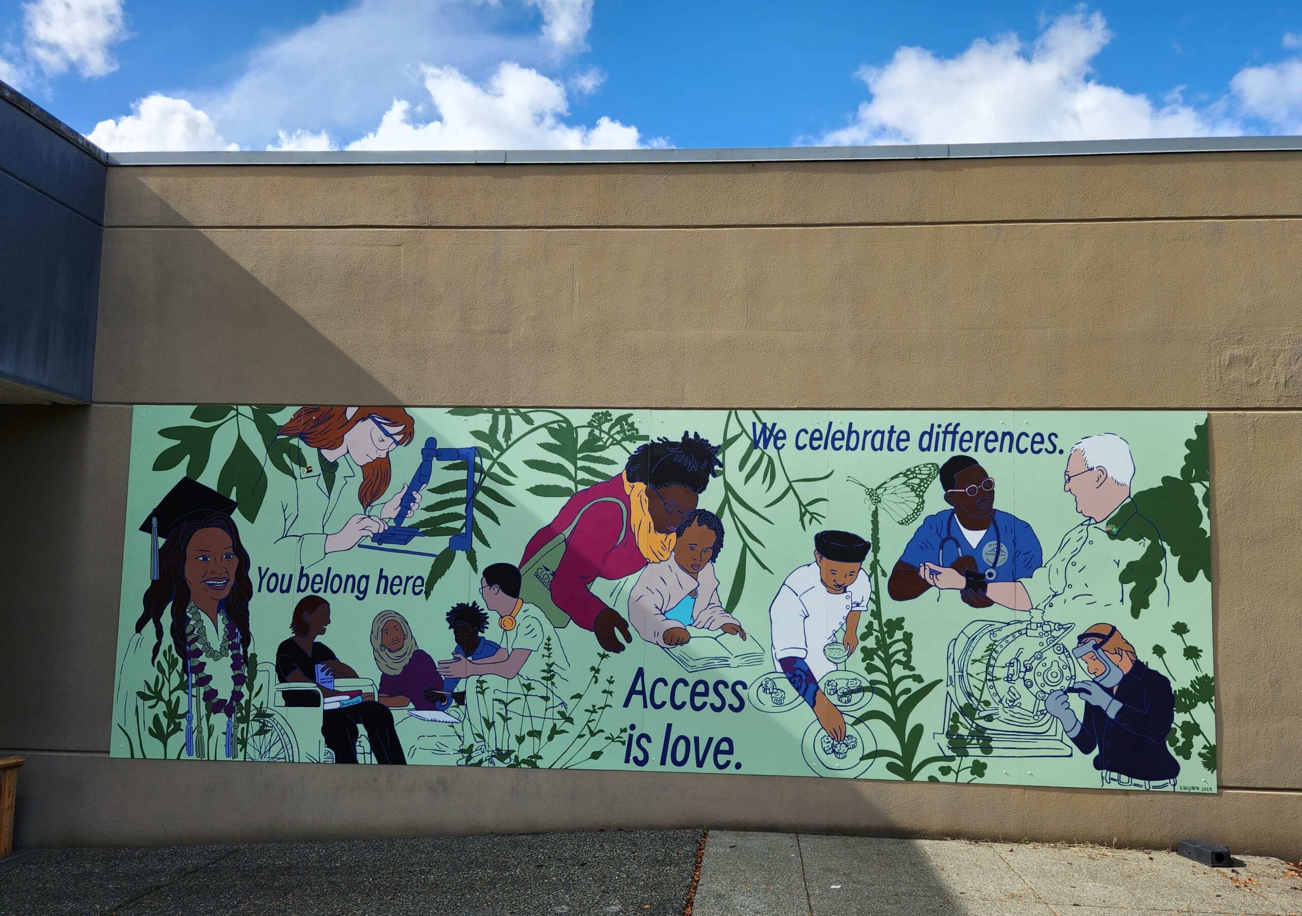 There’s a striking new mural at Clover Park Technical College (CPTC) that’s bringing student voices and community creativity to the forefront of campus life. Installed in early October on the side of Building 16, the mural reflects CPTC’s commitment to celebrating diversity, representation and belonging.