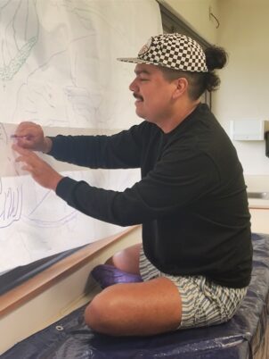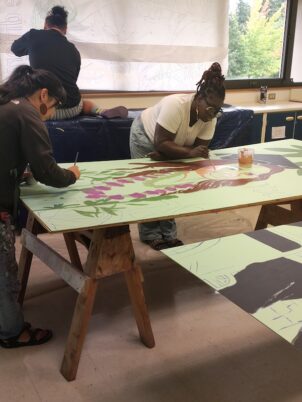 With partial support of Perkins public funding – this project aimed to increase access and visibility that peer mentorship is for everyone – CPTC set out to find an artist who could collaborate closely with students to bring this vision to life. The college selected Saiyare Refaei, a Tacoma-based Chinese Iranian artist known for their murals, printmaking, painting and community collaborations.